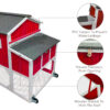 PETSCOSSET PET24 95″ Large Chicken Coop Mobile Wooden Hen House with Nesting Box,with 6 Ventilation Door and Ramp,Red