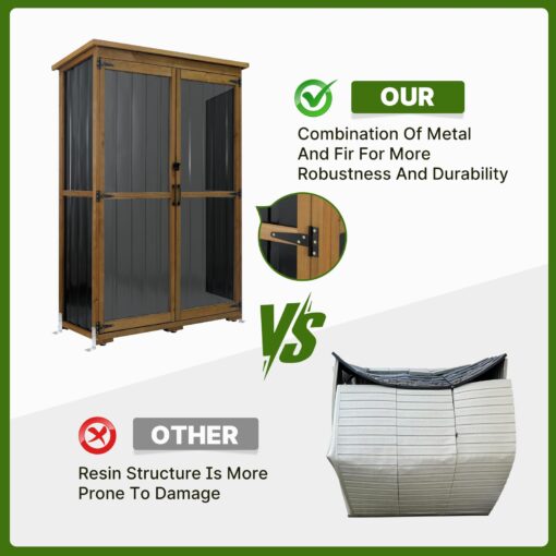 PETSCOSSET Outdoor Storage Cabinet: Rustic 3-Shelf Organizer with Waterproof Asphalt Roof