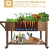 Petscosset GF23 Raised Garden Bed 55.5x24x32in Mobile Elevated Wood Planter with Lockable Wheels, Shelf, Liner,Brown