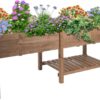 PETSCOSSET Raised Garden Bed: Ergonomic Outdoor Planter with Storage & Drainage