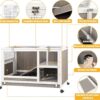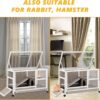 PETSCOSSET PET38 Guinea Pig Cages Indoor Wooden Rabbit Hutch with Ramp, Pull-Out Tray, Wheels,White/Grey