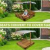 PETSCOSSET All-Weather Kids Sandbox: Durable Fir Wood Play Zone with Sunshade